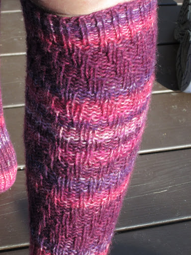 ei raaski käyttää kengissä. Eli siis ei pitsiä, ei palmikkoa eikä oikein mitään pintaneulettakaan. Aika haastava tehtävä, kun huomioi, että itse en taatusti jaksa tehdä ainakaan pitkiä sukkia ilman, että sukassa on joku juttu, joka tekee tekemisestä mielekästä.